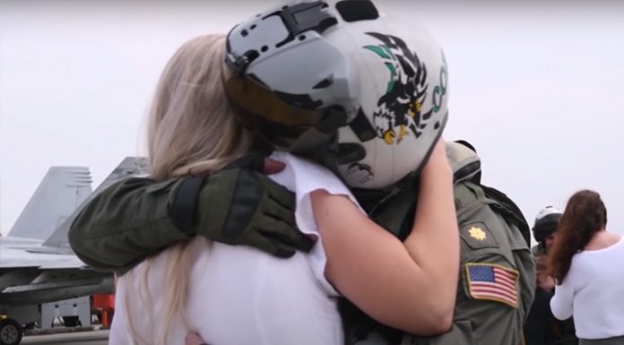 The wife of this fighter jet pilot tried to keep a secret from him for months.